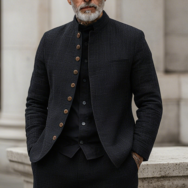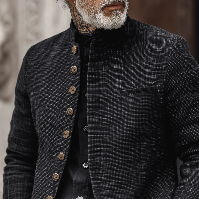 The Men’s Woven Textured Plaid Stand Collar Single-Breasted Jacket blends classic patterning with modern tailoring. Its stand collar and textured plaid elevate everyday outfits, offering a versatile and polished layer for year-round wear.